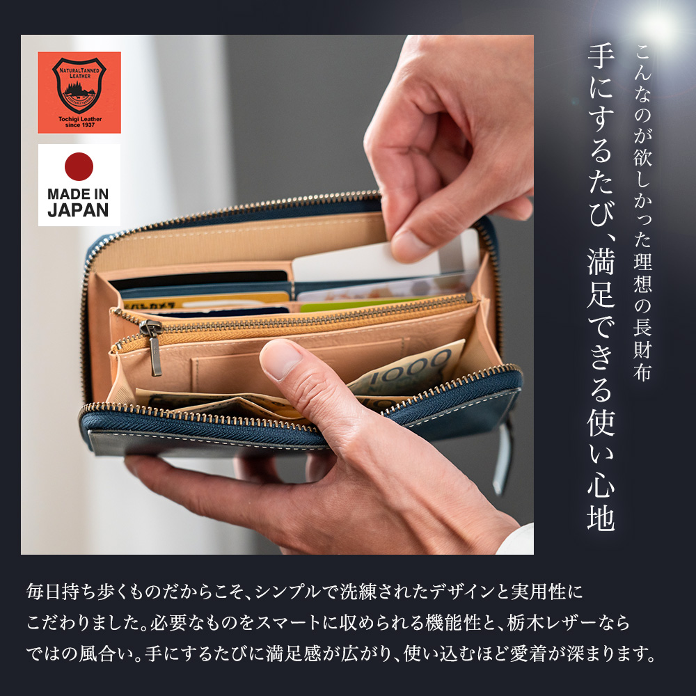 日本最高峰の植物タンニンなめし牛革「栃木レザー」の長財布です。