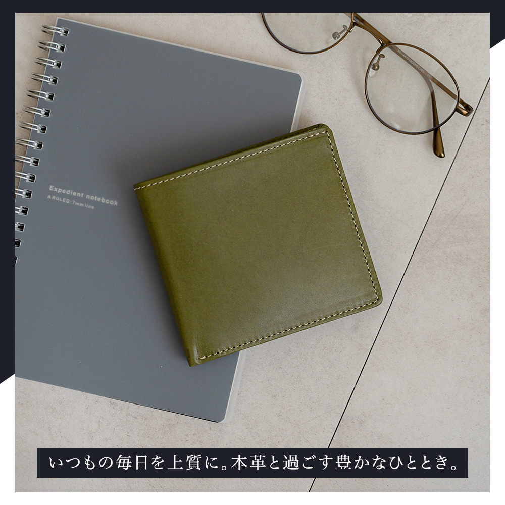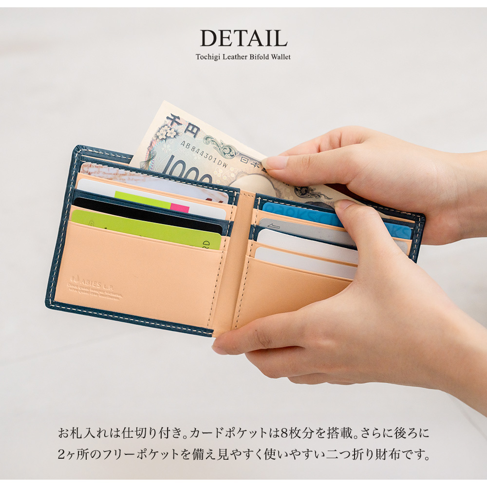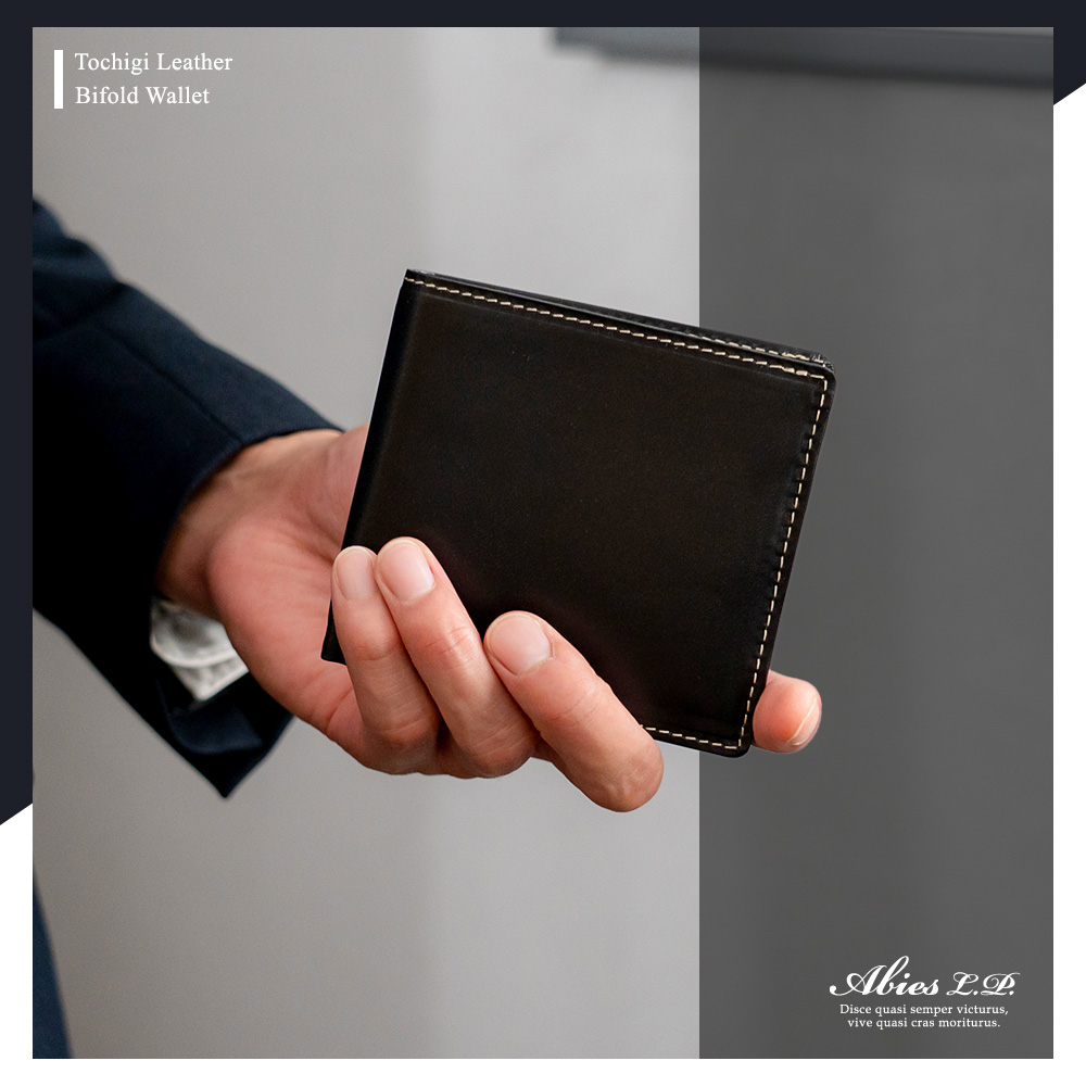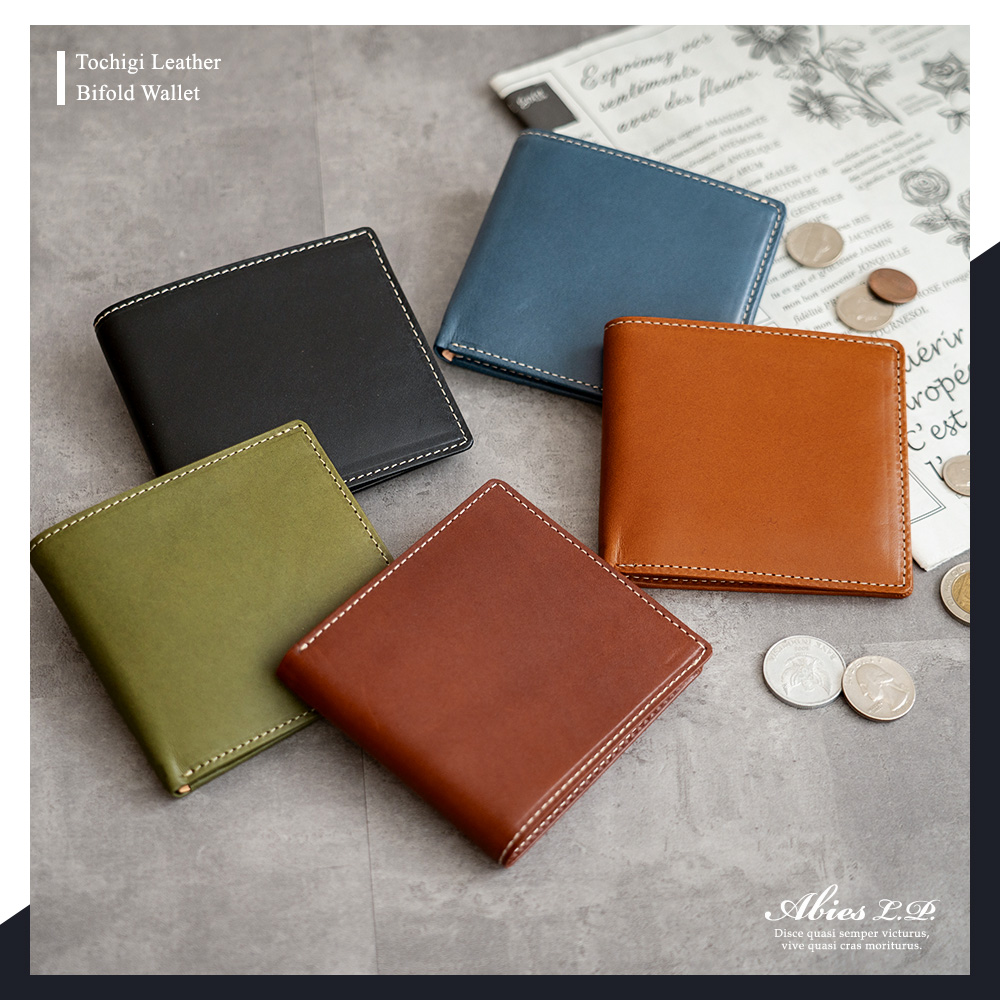 日本最高峰の植物タンニンなめし牛革「栃木レザー」の二つ折り財布です。