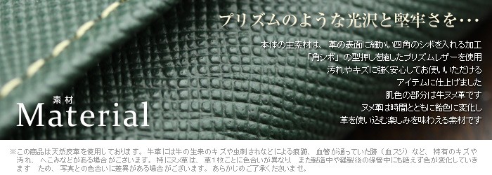 ■ MATERIAL : 牛革(外側)・牛ヌメ革(内側)・シャンタン生地(裏地)