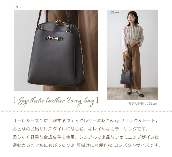 <合成皮革 クロスベルト 軽量 2way リュック&トート>