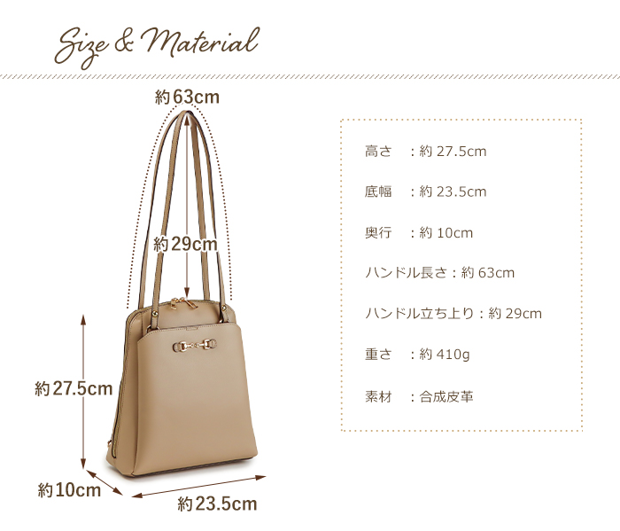■ 本体 : H 約27.5cm × 底幅 約23.5cm × D 約10cm