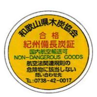 和歌山県が世界に誇る硬質の炭、それが紀州備長炭です。その歴史は、弘法大師が広めた熊野炭が始まりといわれています。現在の備長炭の形を作ったのが、江戸時代の田辺の炭問屋「備中屋長左衛門」。彼の名前から備長炭と呼ばれます。燃料として火力が強く火持ちが良い、温度調節も団扇一つで簡単にできる等重宝されています。製炭時には1,000℃以上の高温となり、精錬された燃える炭に素灰をかけて消化します。この素灰がかけられた炭が白いことから白炭とも呼ばれます。紀州備長炭は硬質で、叩くと金属音がします(風鈴や炭琴などに利用されます)。和歌山県は備長炭発祥の地であり、その品質の良さは他の追随を許すことなく、独特な製法技術は昭和49年和歌山県無形文化財に指定されました。平成11年の 南紀熊野体験博覧会・リゾートピア和歌山 99 を機に、和歌山県、木炭業者が日本海事検定協会に紀州備長炭の安全試験を依頼しました。粉、粒、固形の各紀州備長炭の燃焼性(自然発火温度等)試験の結果、紀州備長炭は安全であり、航空法の危険物には当たらないとの結果を得たことで航空安全シール貼付の紀州備長炭は機内に持ち込み事が可能となりました。