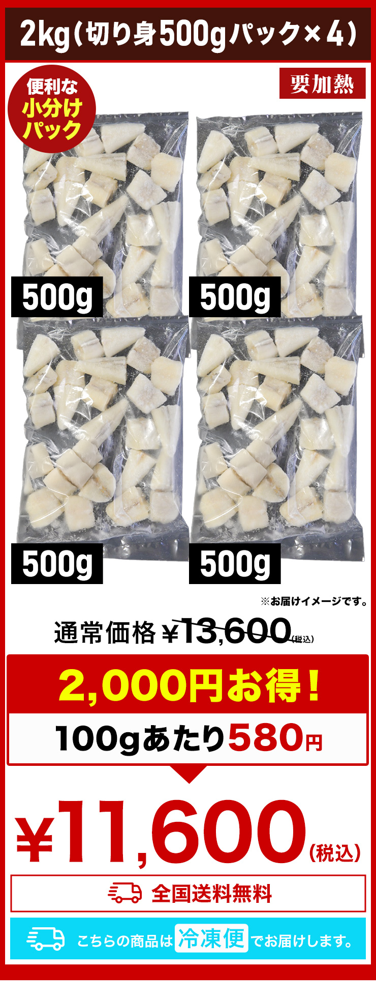 ■2kg (切り身500g×4パック)