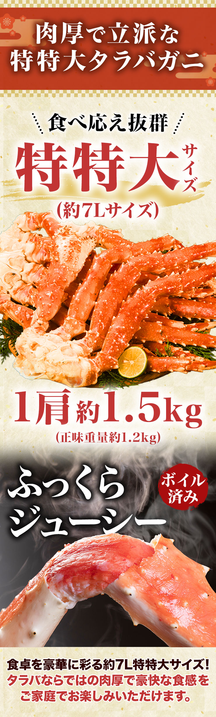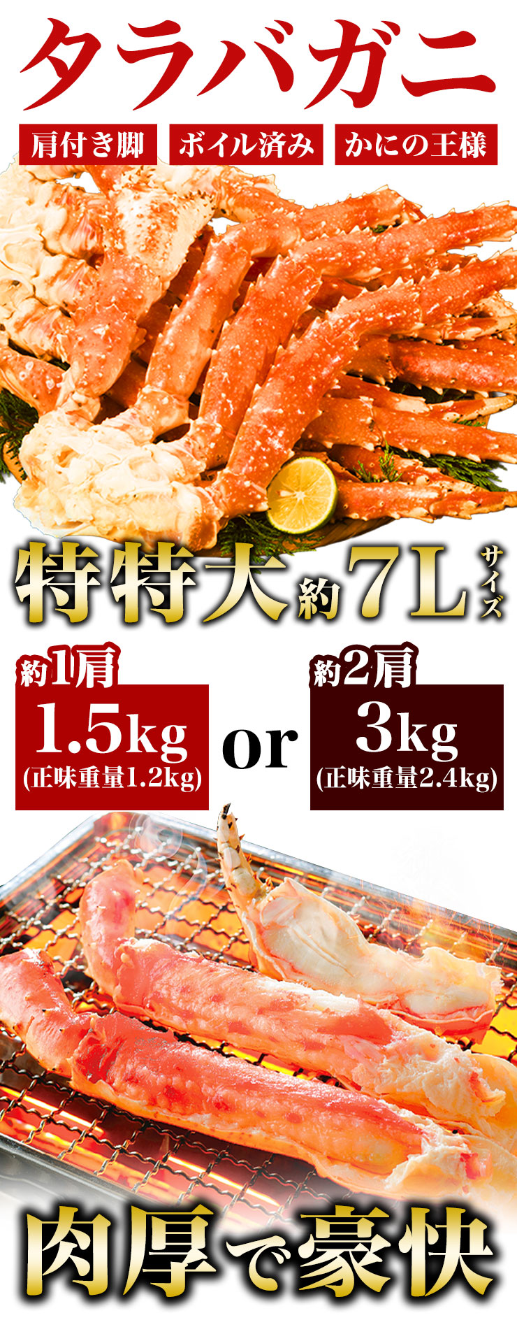 | 特特大ボイル済タラバガニ肩付脚3kg |