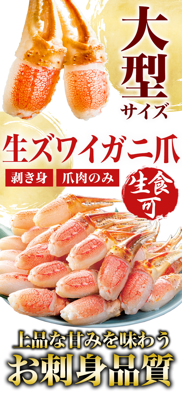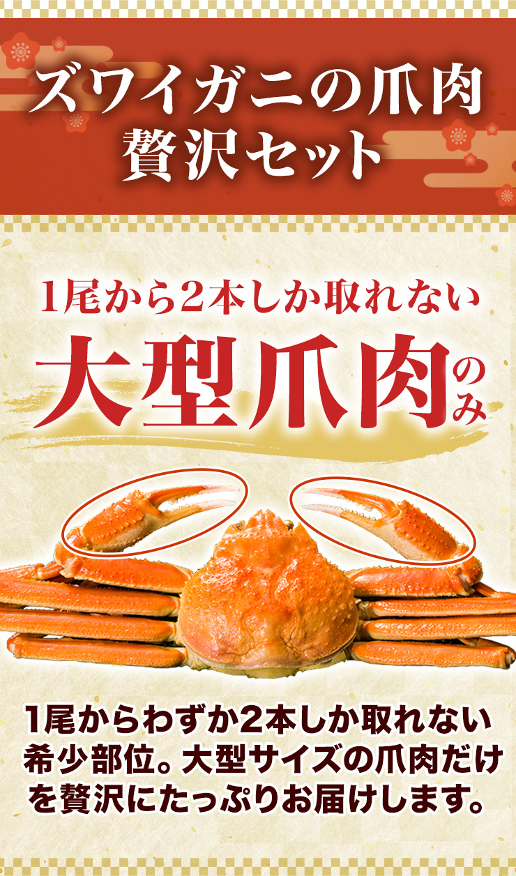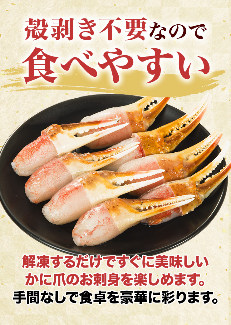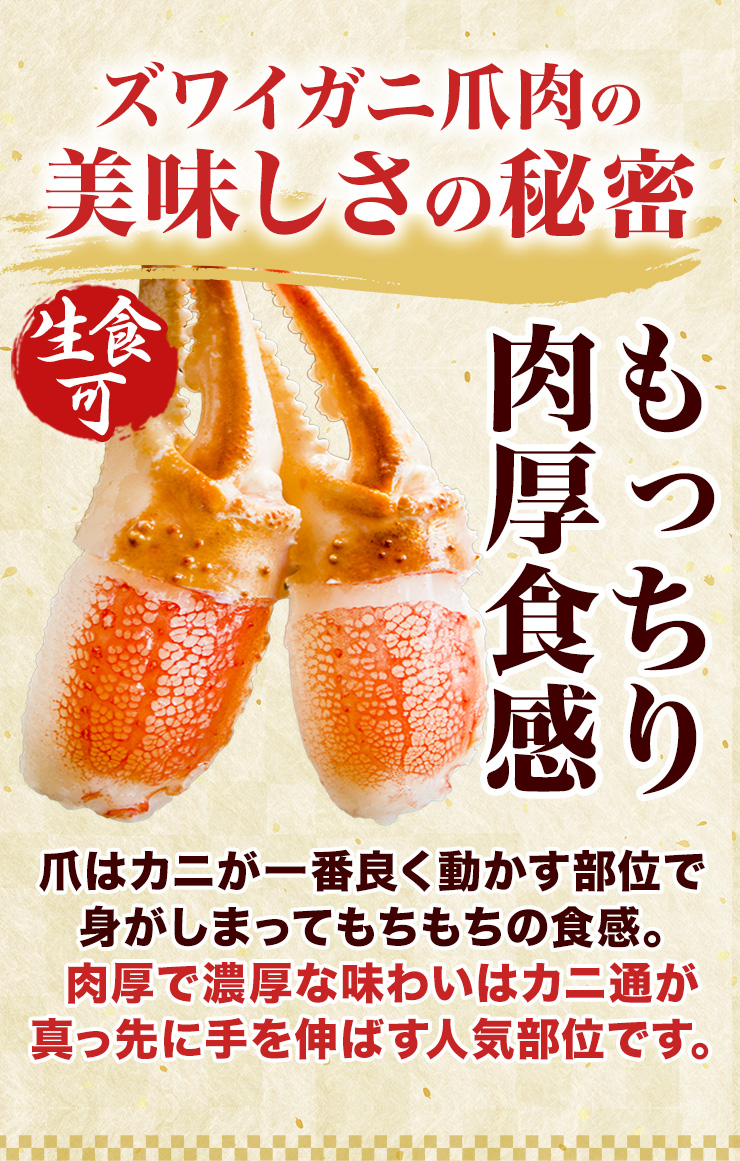 | 大型お刺身用生ズワイガニ爪剥き身 |