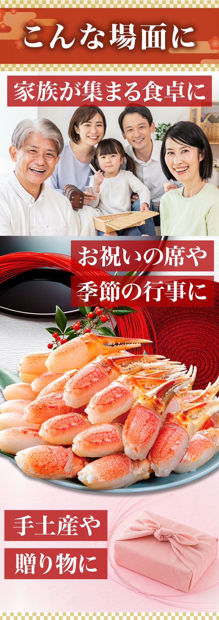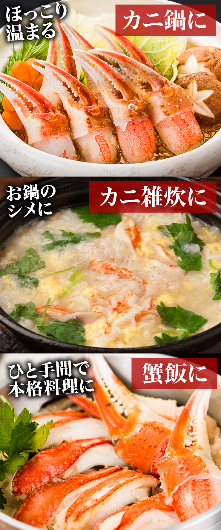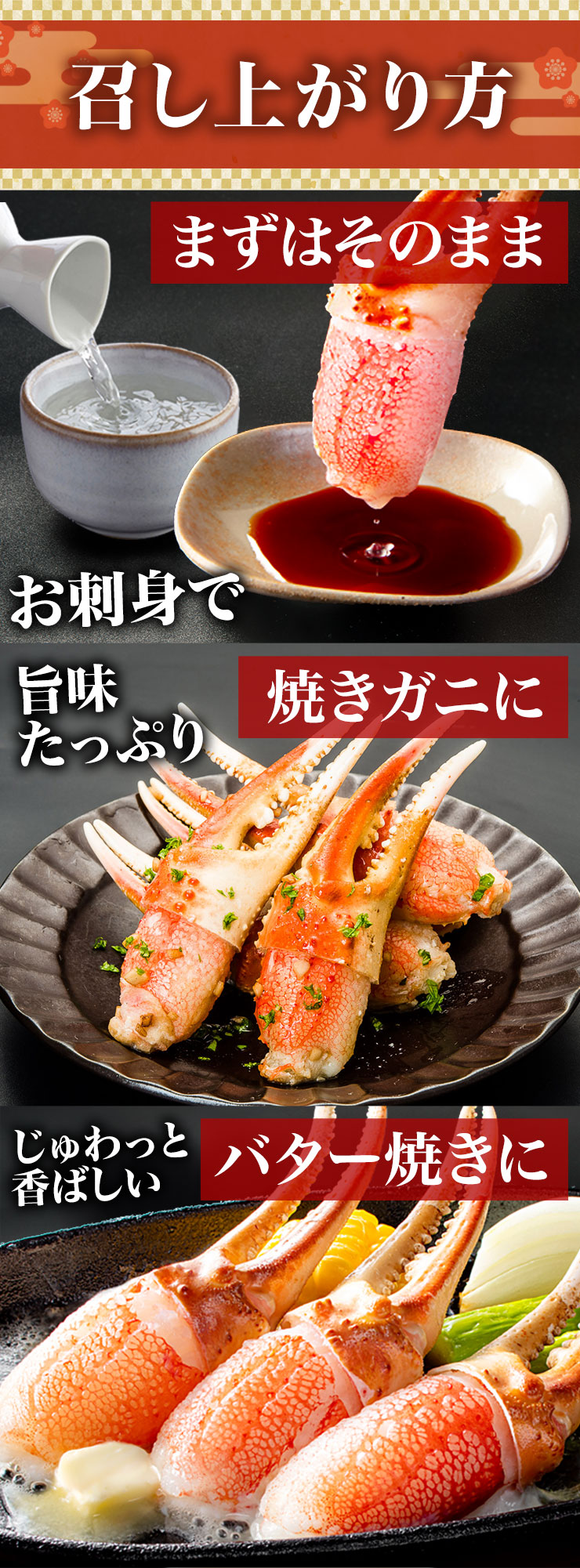| ■1.5kg(正味重量1.2kg) 【爪剥き身】約46〜65本前後 ■3kg(正味重量2.4kg) 【爪剥き身】約92〜130本前後 ※重量でお届けの為、本数は目安となります。 ・空気に触れることによる乾燥や酸化を防ぐため氷の被膜をつけてお届けいたします。 ・( )内の正味重量(正味)とは、氷の被膜をつける前のカニ正味の重量です。 ・商品のラベルにはカニ正味の重量を記載しています。 |