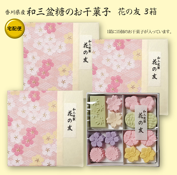 和三盆お干菓子・花の友(お干菓子15個入り)×3箱 (宅配便でお届け)