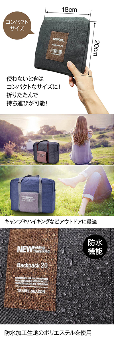 出張や旅行に大活躍!コンパクトに持ち運べて、広げれば30Lのボストンバッグになります。