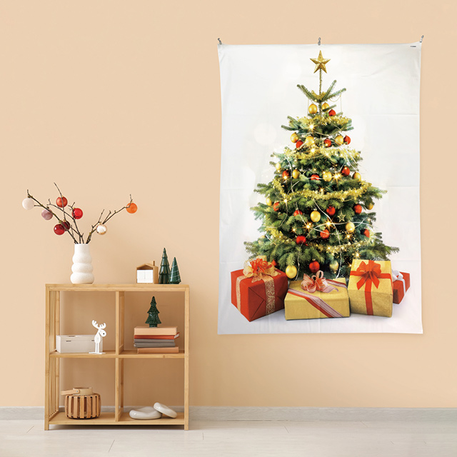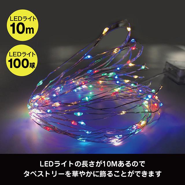 彩色LED100個で華やか!クリスマスツリータペストリー&LEDライト|8パターン点灯リモコン付き