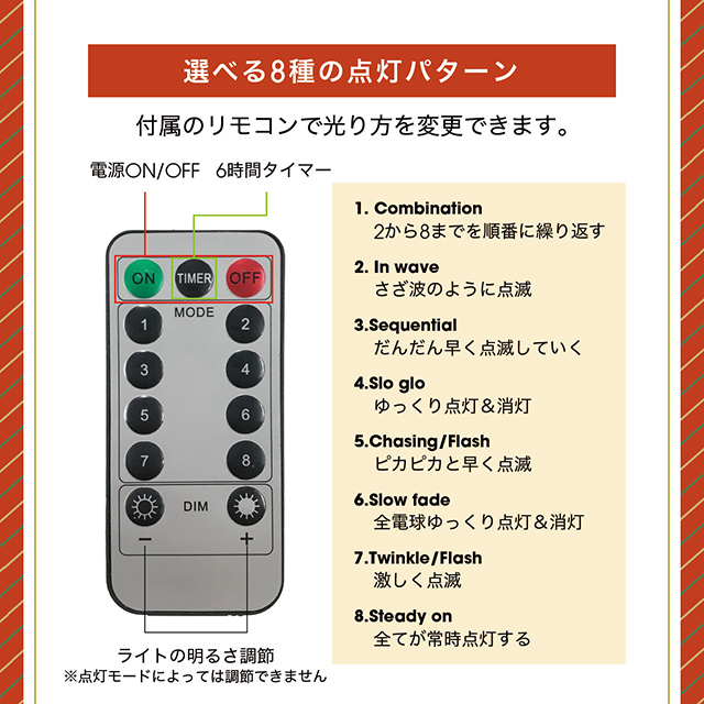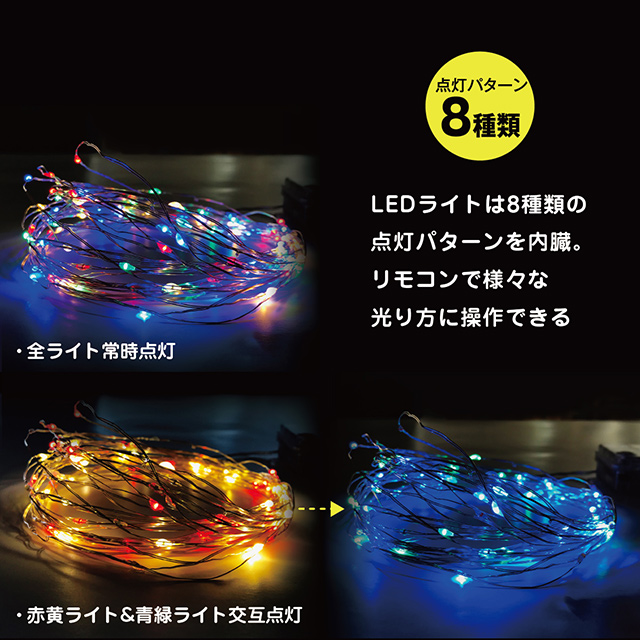 8種類の点灯パターン内蔵:付属リモコンでシーンに合わせてワンタッチ切替。