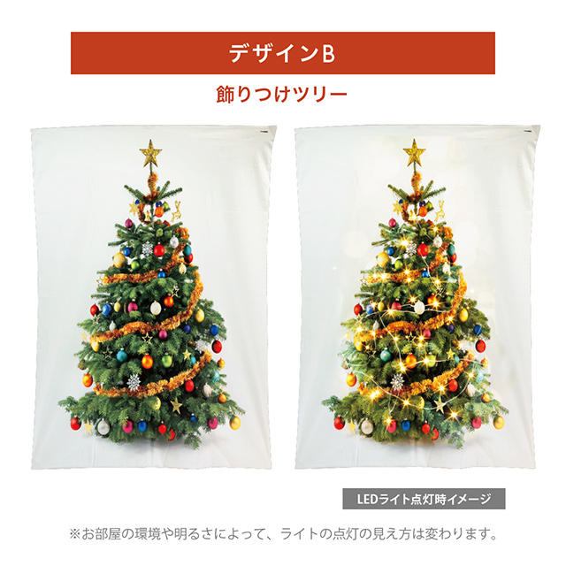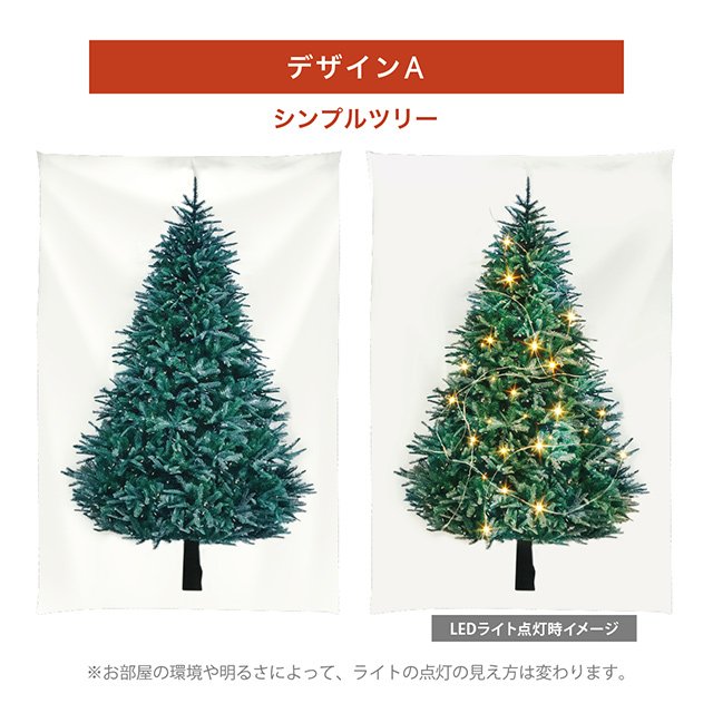 クリスマスツリー柄タペストリー+LEDライトのセットです。