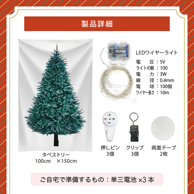 クリスマスタペストリー ツリータペストリー クリスマス LED電球 100個 10m リモコン付き 飾り 壁掛け ツリー イルミネーション ハロウィン christmas-tp