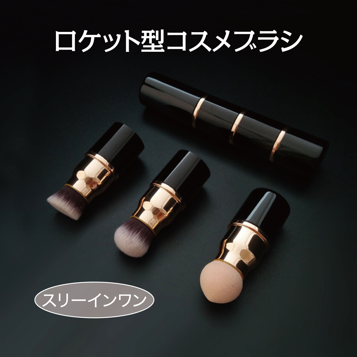 メイクブラシ ロケット式 1本で3種類 コスメブラシ コンシーラブラシ ファンデーション ブラシ コスメ 化粧 cos-br-03