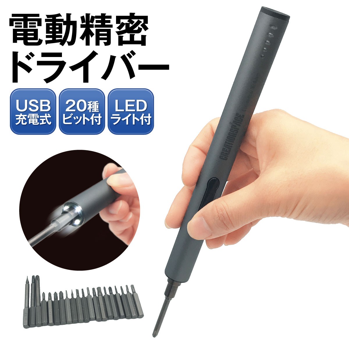 電動精密ドライバー 電動 ドライバー ペン型 USB充電式 コードレス LEDライト付 20種ビット付 スマホ メガネ パソコン 時計 カメラ driver01
