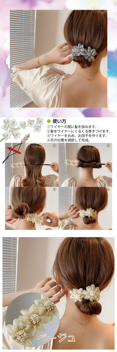 くるくる巻いて、おしゃれに髪をまとめることができます。