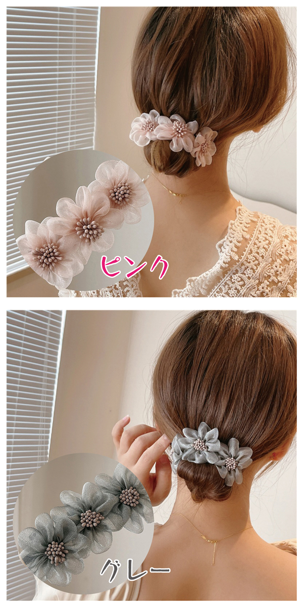 ヘアアクセサリー フラワー クリップ 3色セット バレッタ ヘアクリップ 花 髪留め コサージュ ワイヤー おしゃれ かわいい flowe-hair