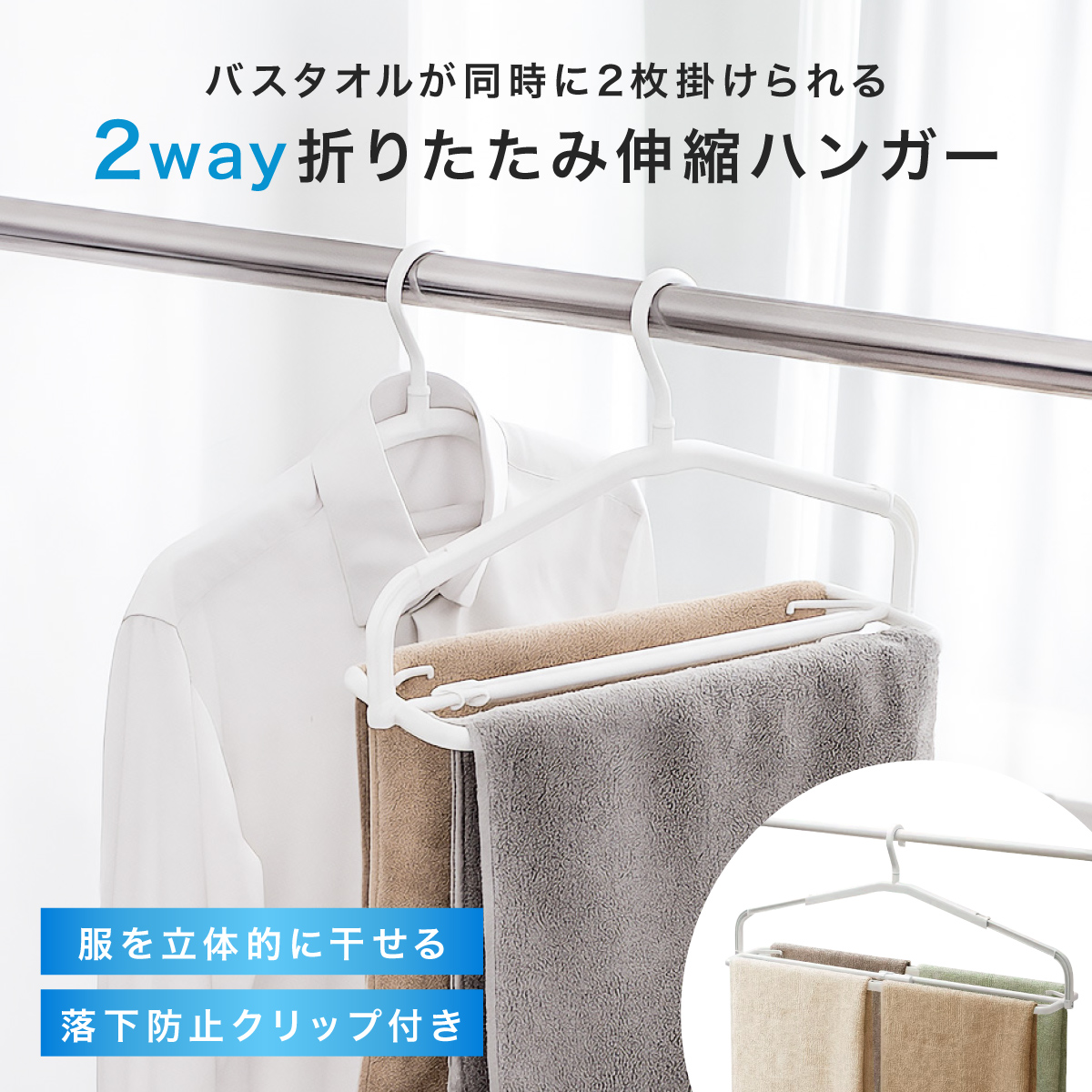 \バスタオルも洋服もこれ1本!2Way折りたたみ伸縮ハンガー/