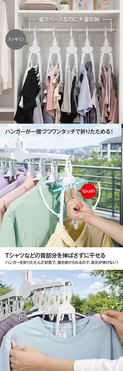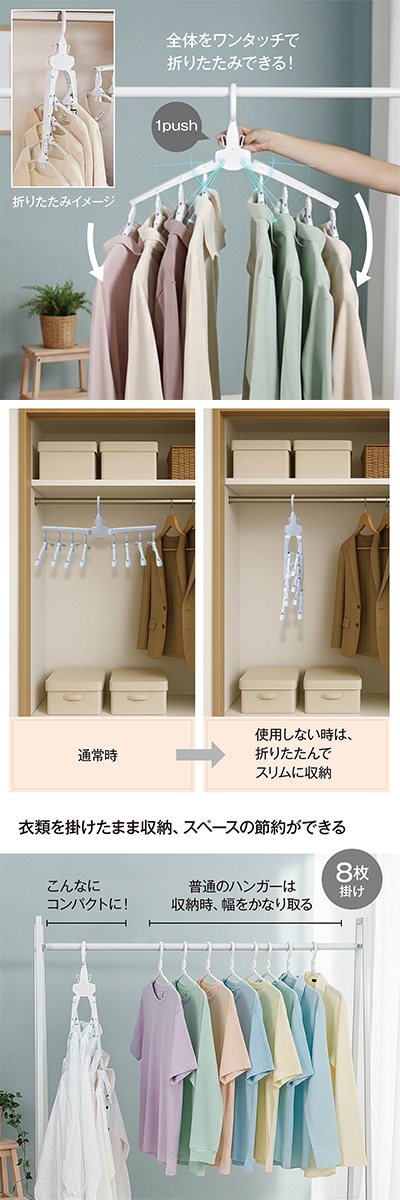 ワンタッチハンガー 8連 ハンガー ワンタッチ 便利グッズ 便利 物干しハンガー 8連ハンガー ハンガーラック 洗濯 スリム 収納 ワイシャツ Tシャツ hanger-8ren