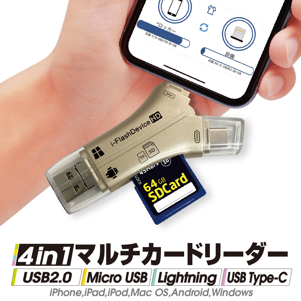 スマホ SD カードリーダー カメラリーダー USB メモリー マルチカードリーダー iPhone Android iPad 写真 保存 バックアップ データ iflash