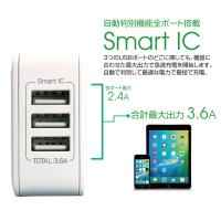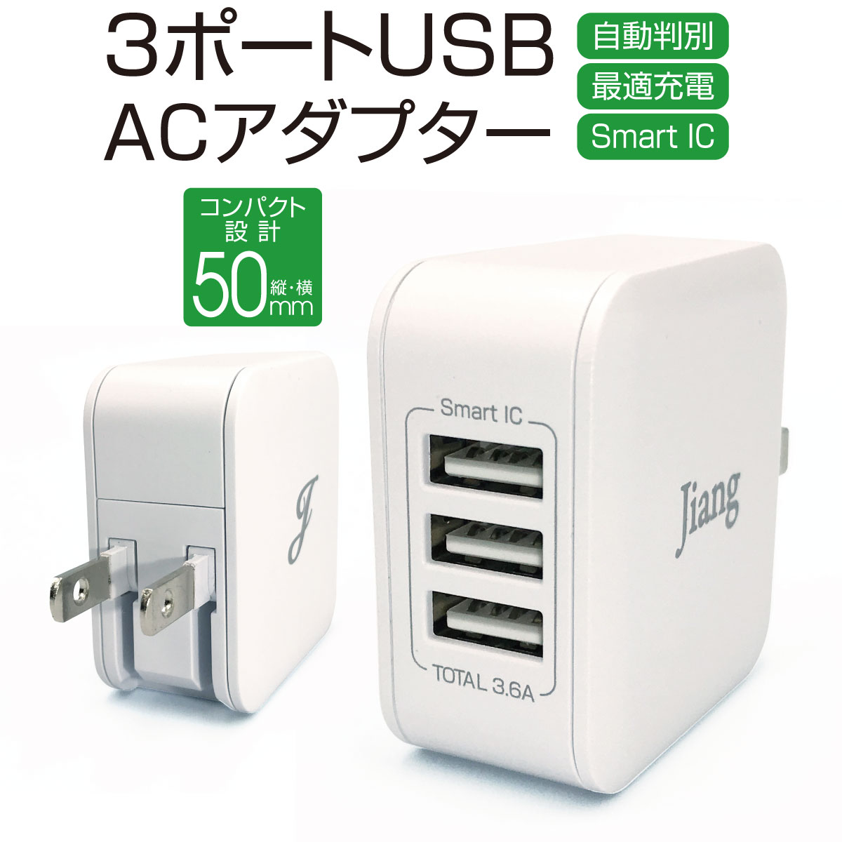 ACアダプタ 3ポート USB 充電器 チャージャー PSE認証 3.6A 3口 コンセント 電源タップ 軽量 同時充電 アダプター USBアダプタ スマホ充電器 jiang-ac04