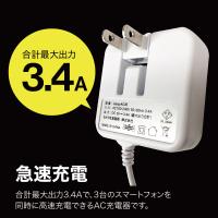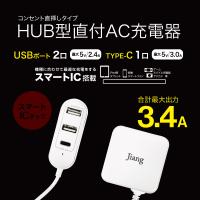 ACアダプター 充電器 USB typeC 3ポート 3口 合計3.4A アダプタ スマートIC 海外対応 ケーブル1.2m コンセント スマホ充電器 jiang-ac05