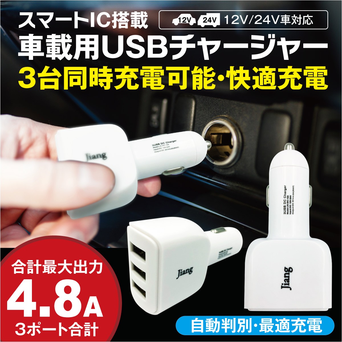 カーチャージャー シガーソケット USB 急速充電 3ポート 4.8A 車載用 車 車載 充電器 チャージャー USBカーチャージャー iphone 防災グッズ jiang-car01