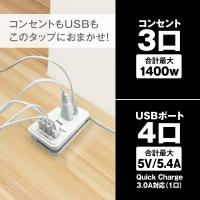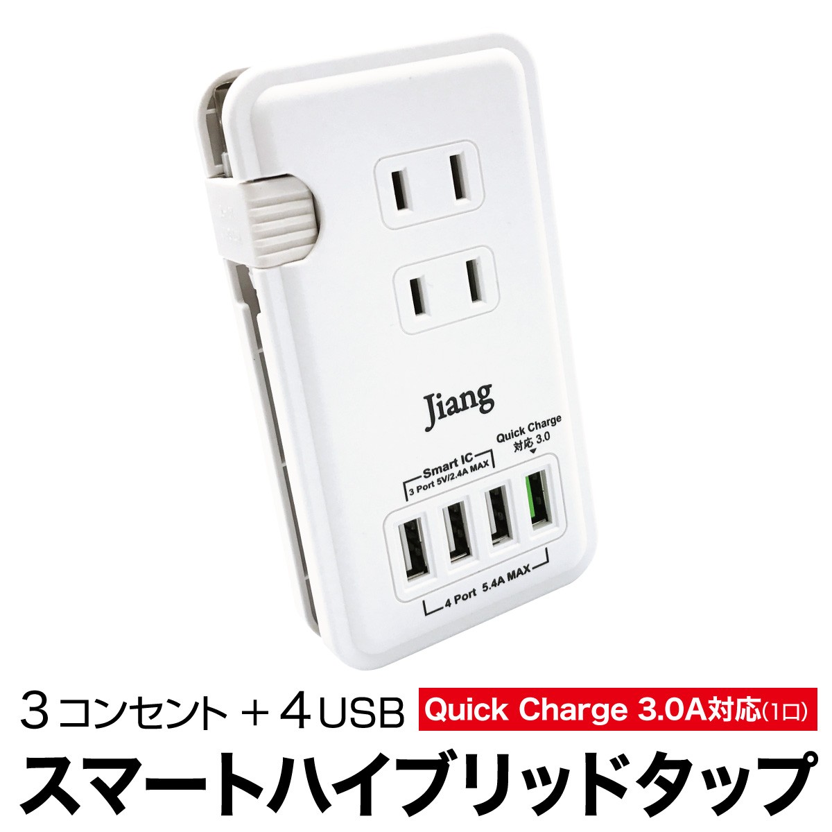 ACアダプター USB コンセント タップ 4ポート USB 4口 5.4A 充電器 USB充電器 コンセント 3口 電源タップ アダプター Quick Charger 3.0A対応 jiang jiang-tap01