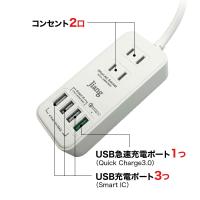 ACアダプター USB 急速 ACアダプタ コンセント タップ 4ポート usb 4口 6.0A コンセント 2口 1400W 電源タップ Quick Charger 3.0A