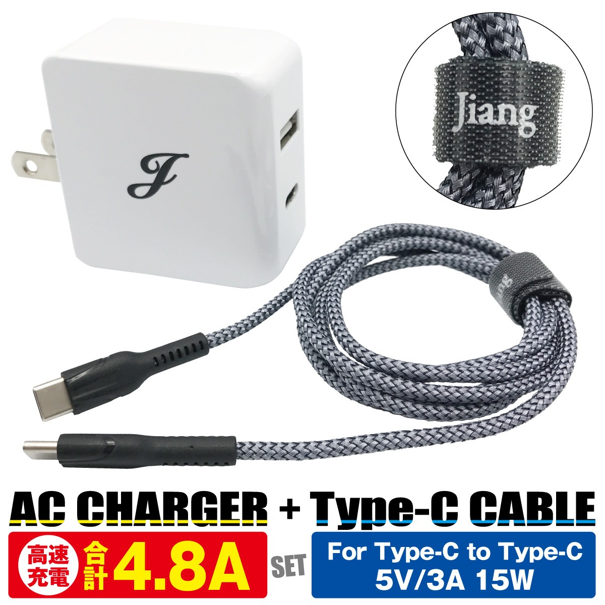 ACアダプター Type-C タイプC USB 充電器 type c 急速 3A Type-Cケーブル付 ACアダプタ 2ポート usb 2口 4.8A typec USB充電器 アダプター jiang-tpc-set
