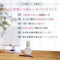 女優ミラー|LEDライト付き メイクアップミラー 3色モード 明るさ調整 拡大鏡付き コードレス