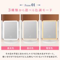 女優ミラー 拡大鏡 三面 三色調光 明るさ調整 角度調整 大容量コスメ収納 折りたたみ USB充電 卓上鏡 化粧鏡 メイクミラー 鏡 プレゼント卓上 joyu-mr02