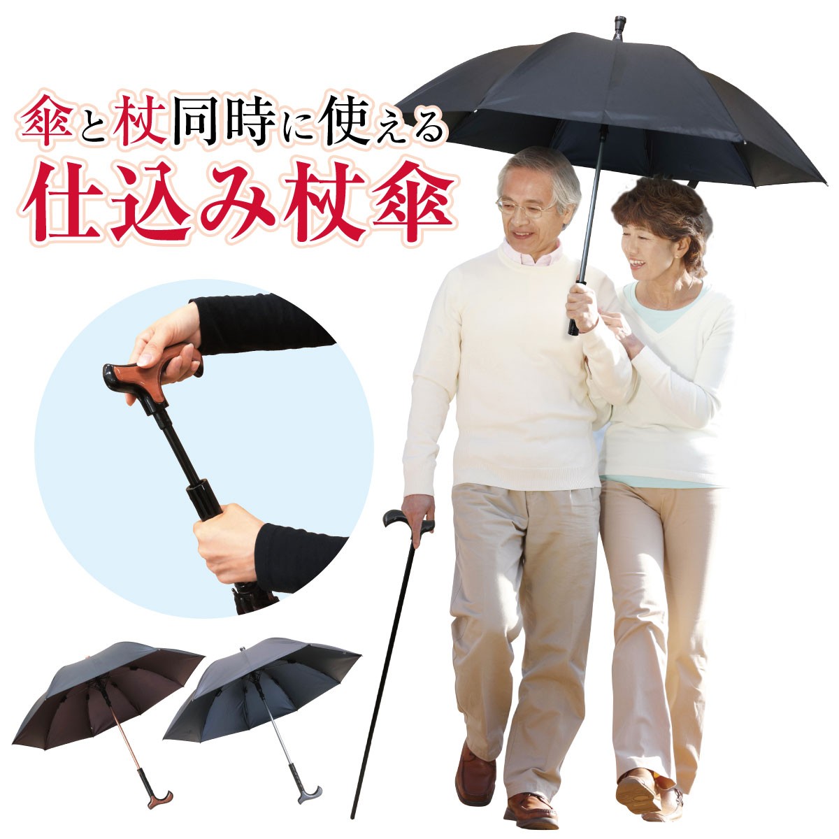 杖傘を杖として使用中、雨が降れば杖を取り出して、傘をさしながら杖が使える仕込み傘です。