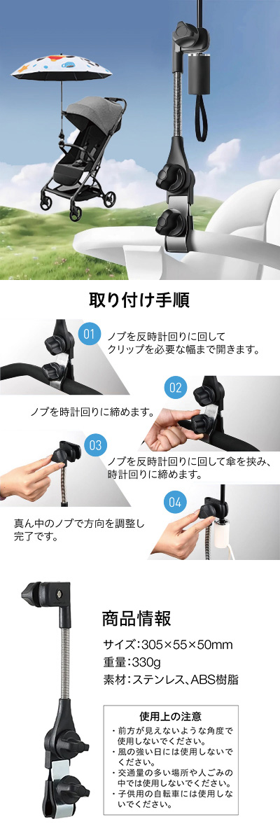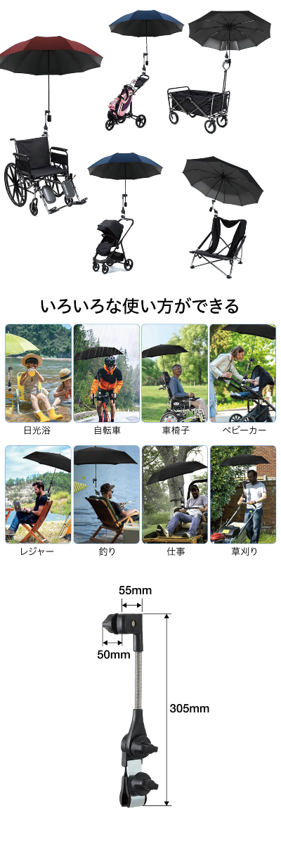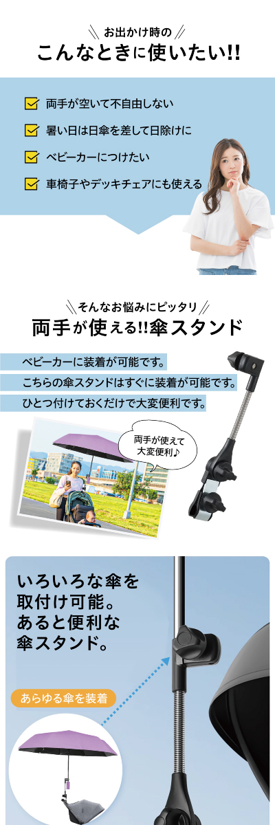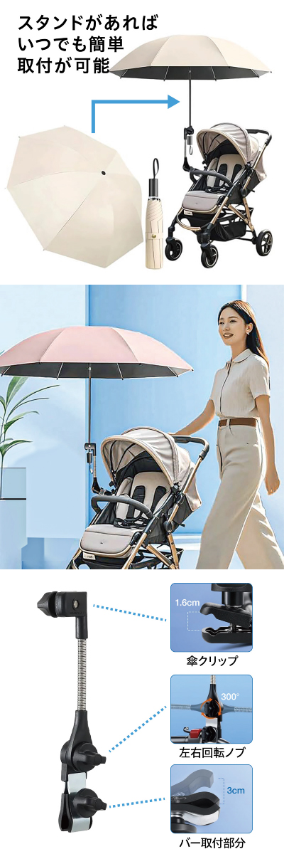 自転車 傘スタンド ベビーカー 傘ホルダー 傘立て 自転車用品 通勤 通学 チャリ 日除け 雨除け 角度調整 紫外線対策 手押し車 kasa-stand