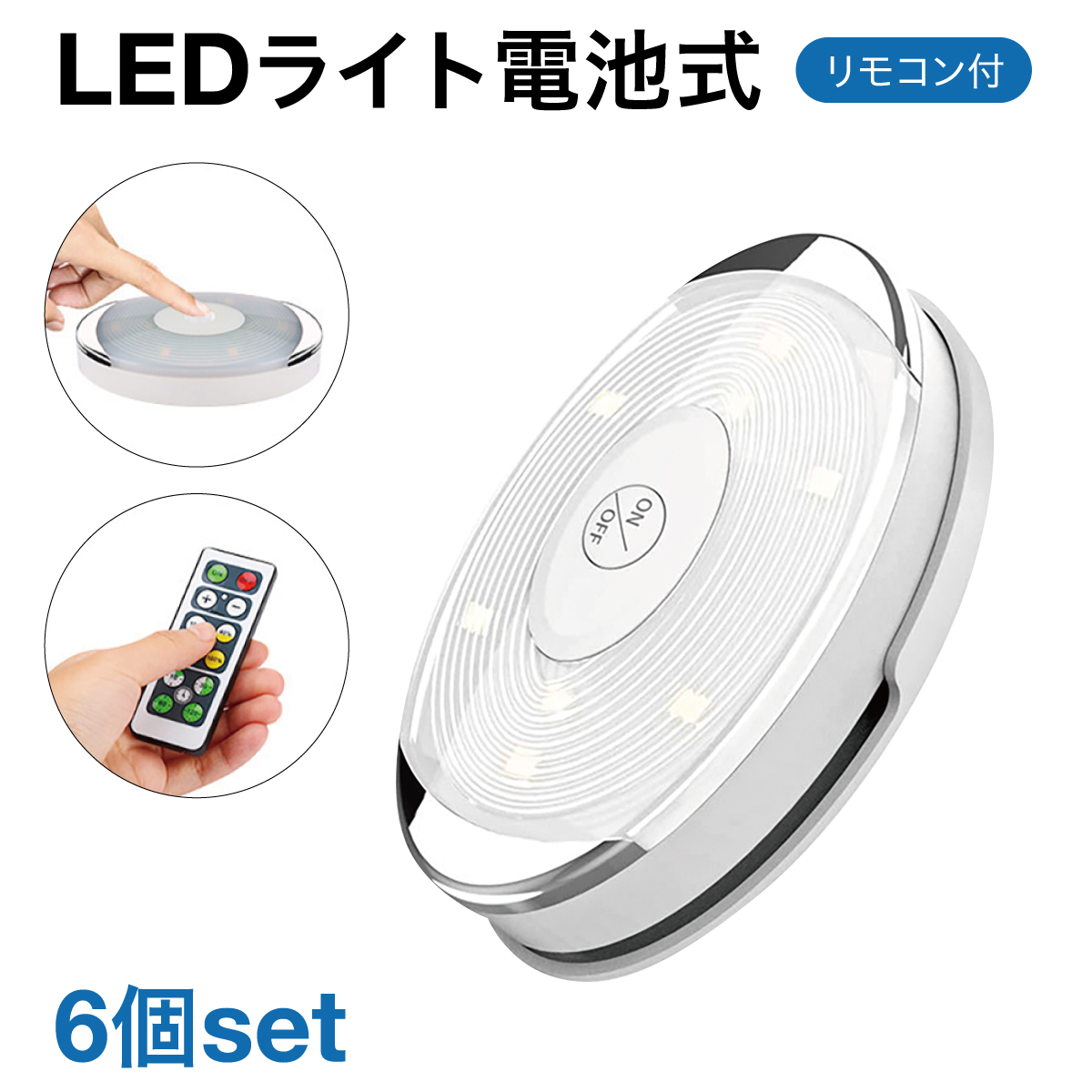 ledライト 6個セット リモコン付き 電池式 明るさ調整 led電球 照明 防災グッズ 室内 小型 玄関 クローゼット 廊下 led-light02