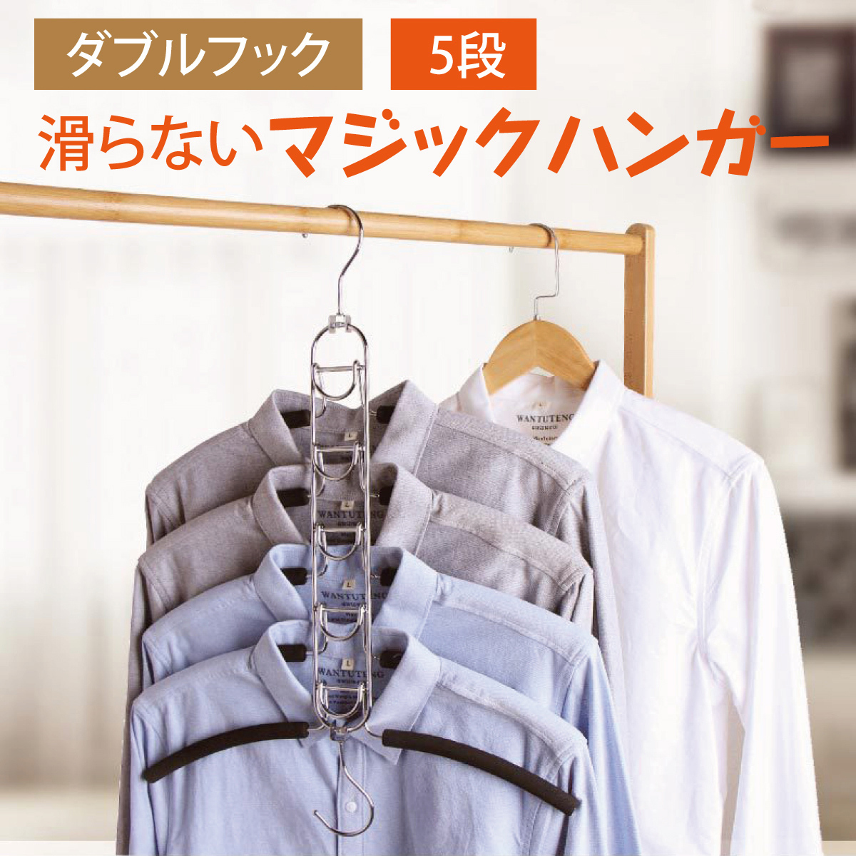 ハンガー すべらない ハンガーラック 5段 ダブルフック 多機能ハンガー 省スペース 衣類ハンガー 便利グッズ magic-hg02