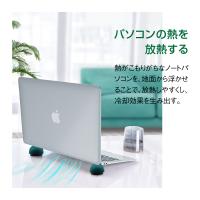 熱がこもりがちなノートパソコンを、地面から浮かせることで、放熱しやすくし、冷却効果を生み出す。