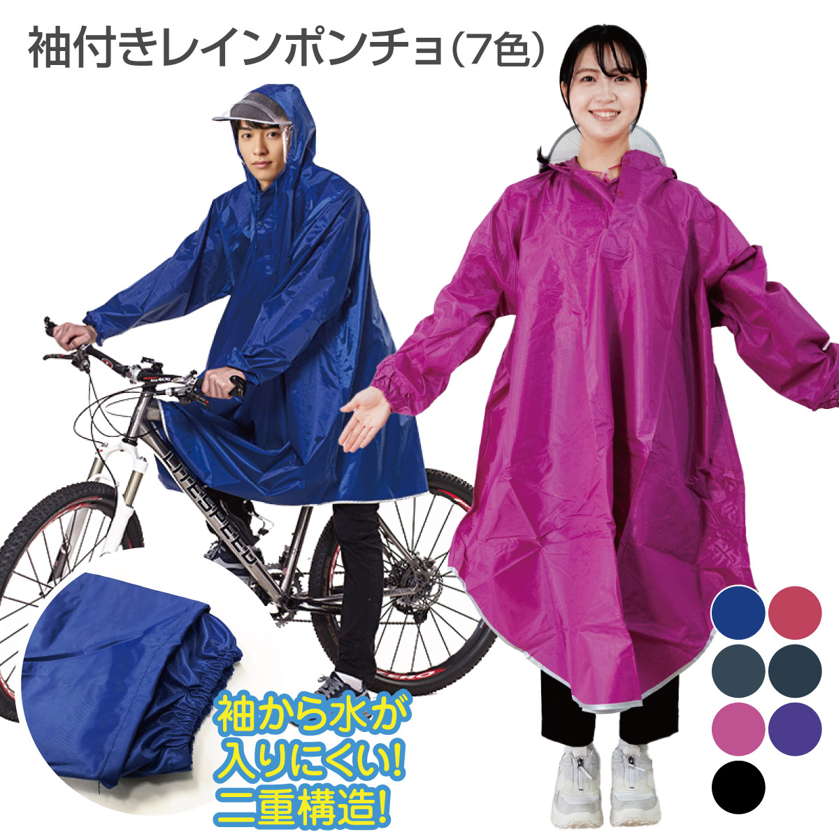 レインコート 自転車 通学 ポンチョ レディース メンズ おしゃれ 通学用 自転車用 レインスーツ レインウェア カッパ poncho02
