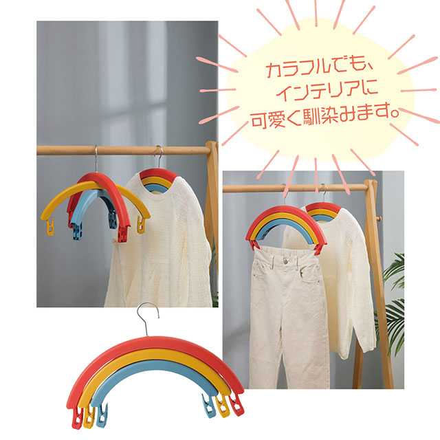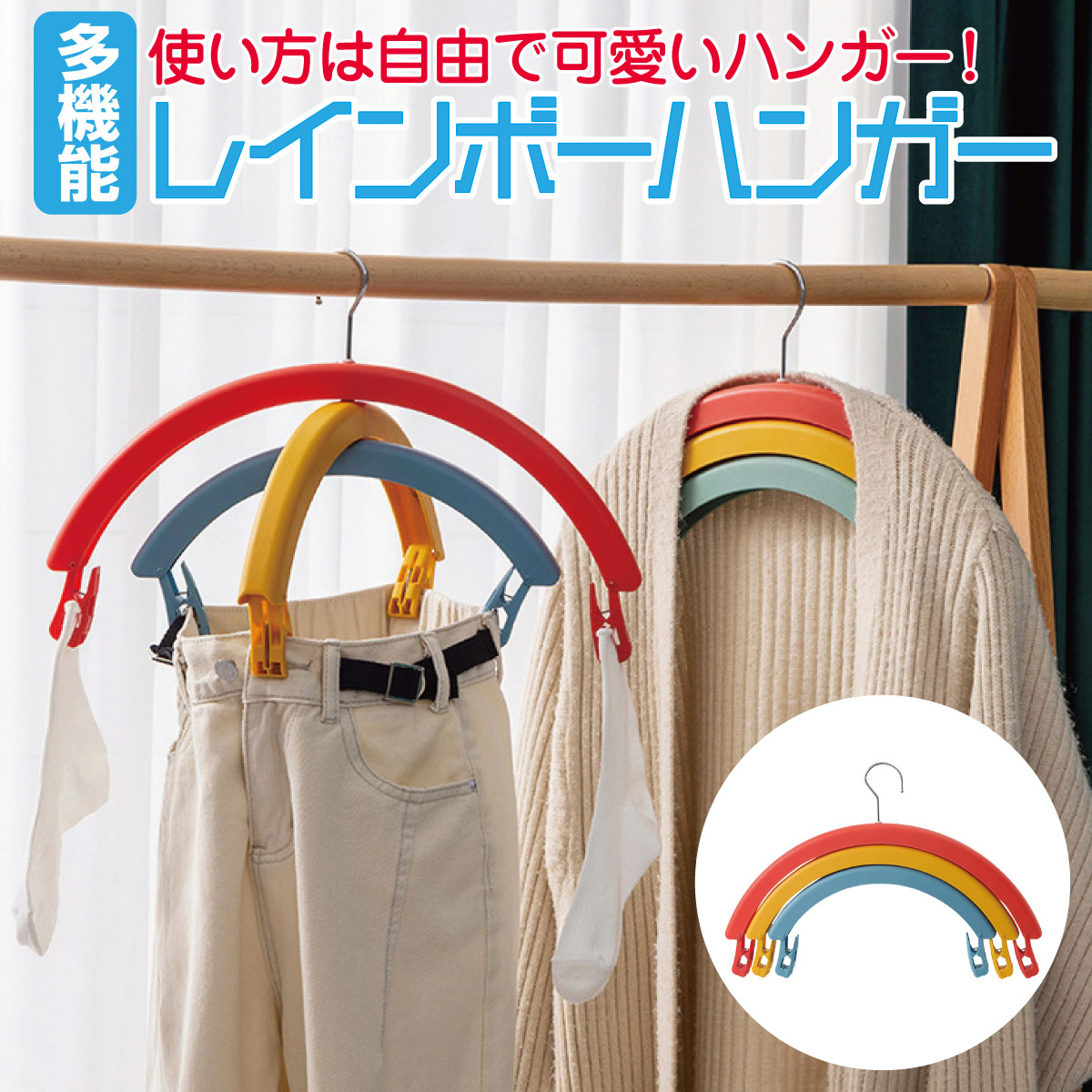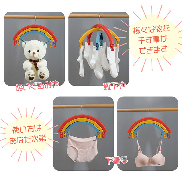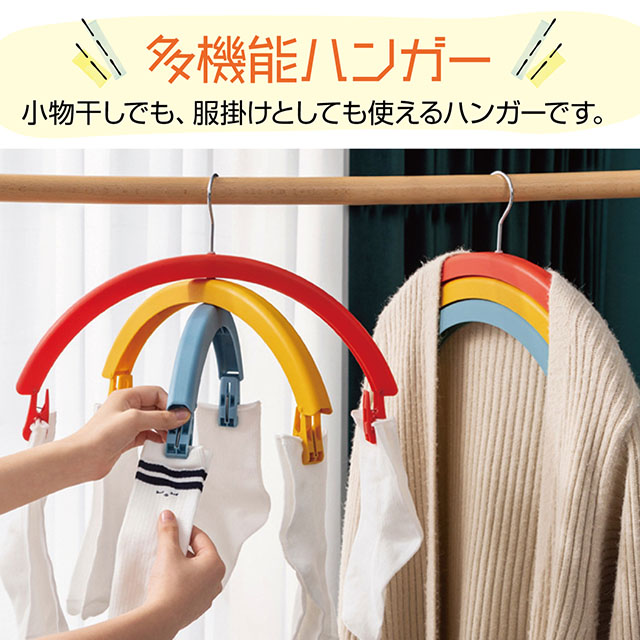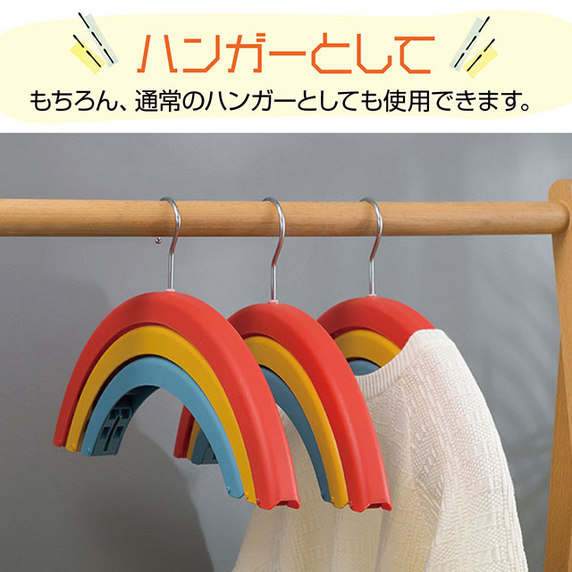 レインボーハンガー 多機能 回転できる 掛ける 挟む 3連 虹色 子供 室内 洗濯バサミ 洗濯 ハンガー 便利グッズ かわいい 新生活 rainbow-hg