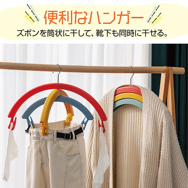 【便利なハンガー】ズボンを筒状に干して、靴下も同時に干せる。
