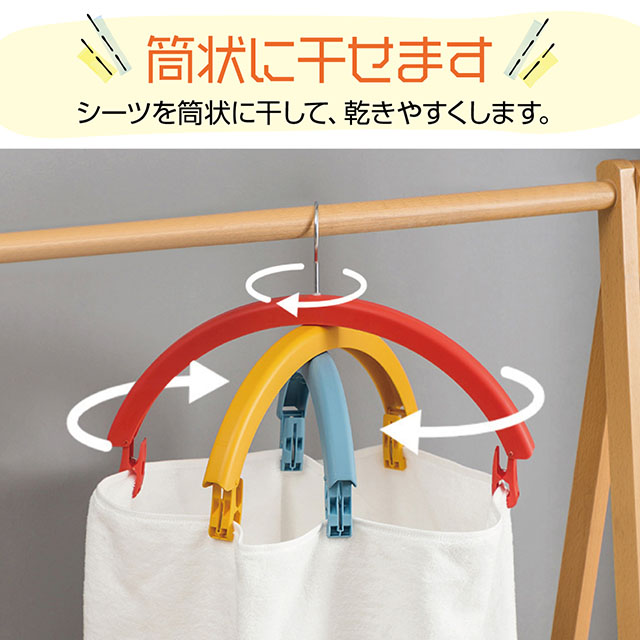 【筒状に干せます】シーツを筒状に干して、乾きやすくします。