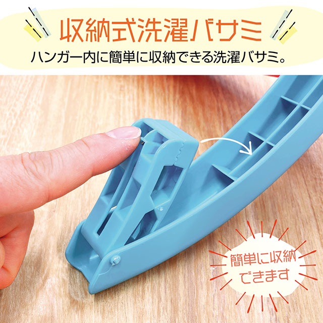 【収納式洗濯バサミ】ハンガー内に簡単に収納できる洗濯バサミ。