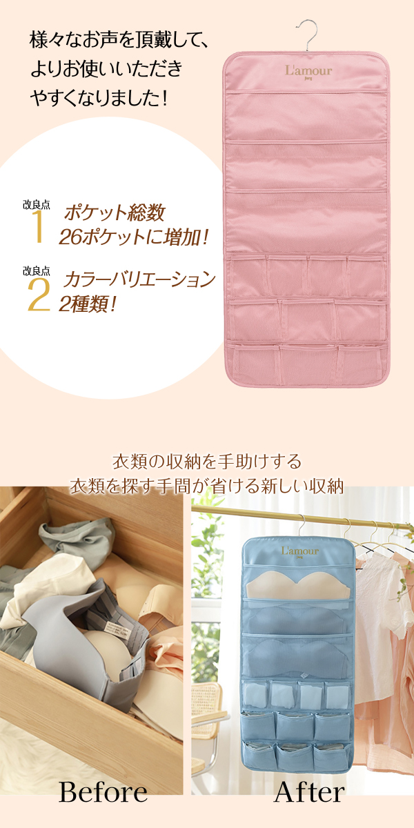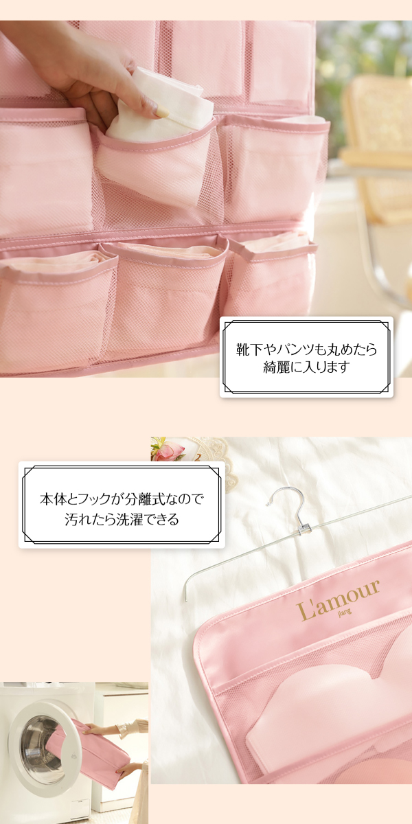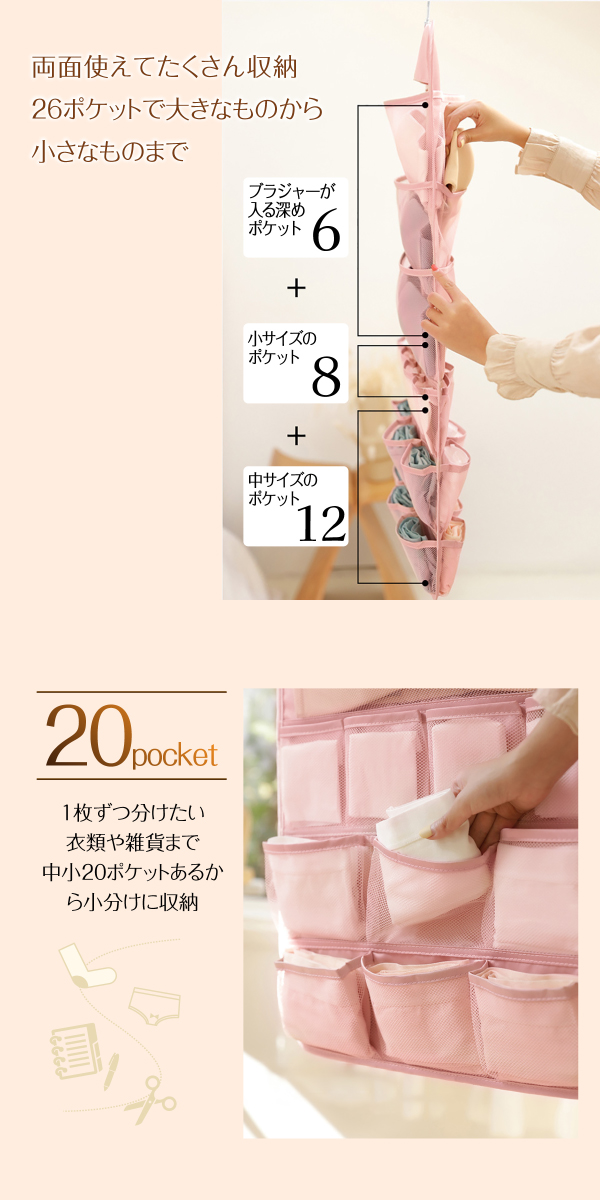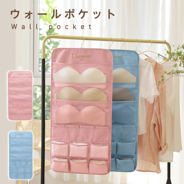下着 収納 仕切り ウォールポケット ハンガー式 ハンガー 吊り下げ収納 ブラの型崩れ防止 おしゃれ ブラケース 衣類 26ポケット jiang ryomen-pk02