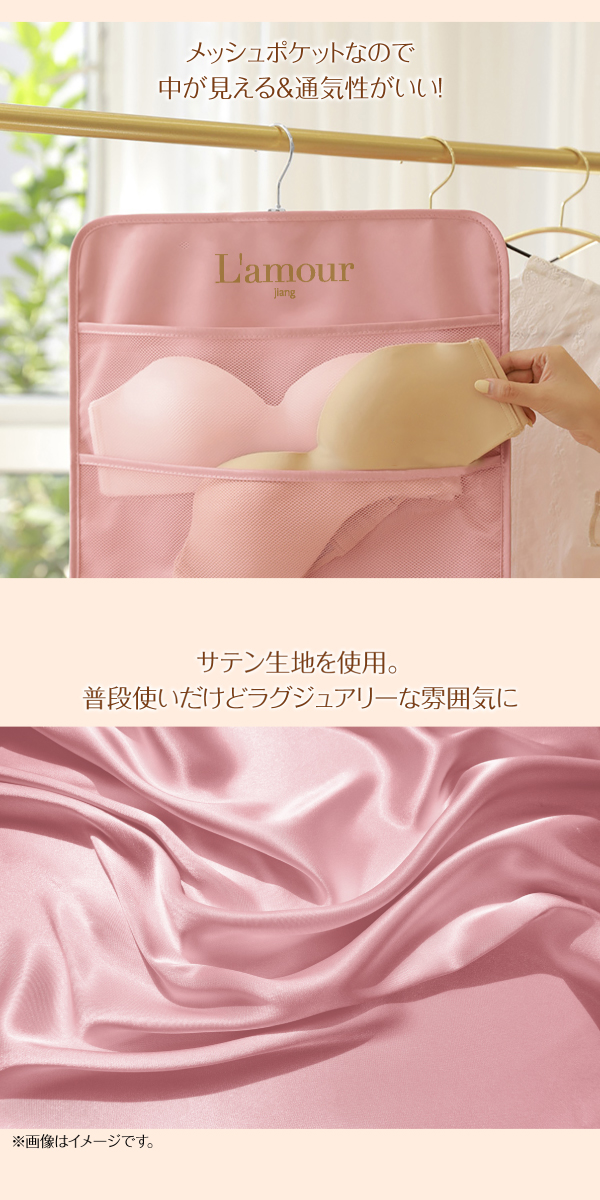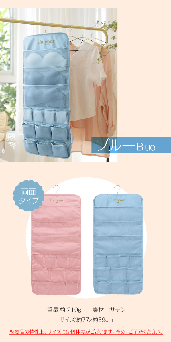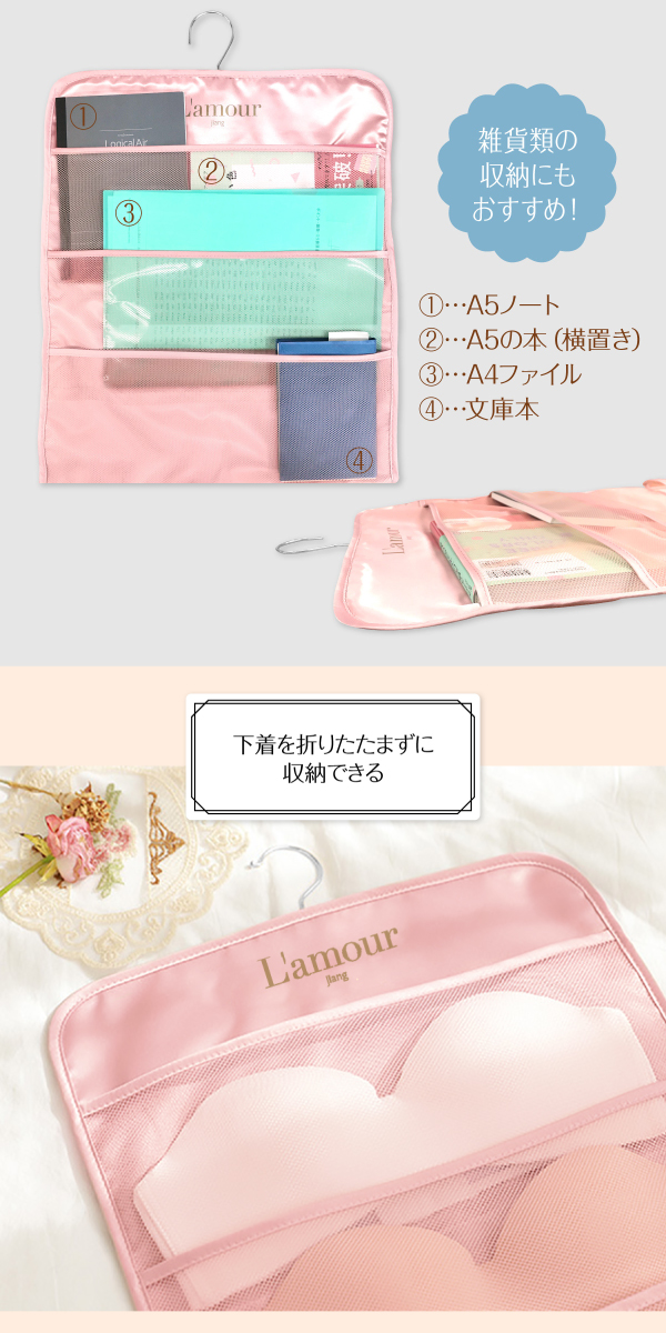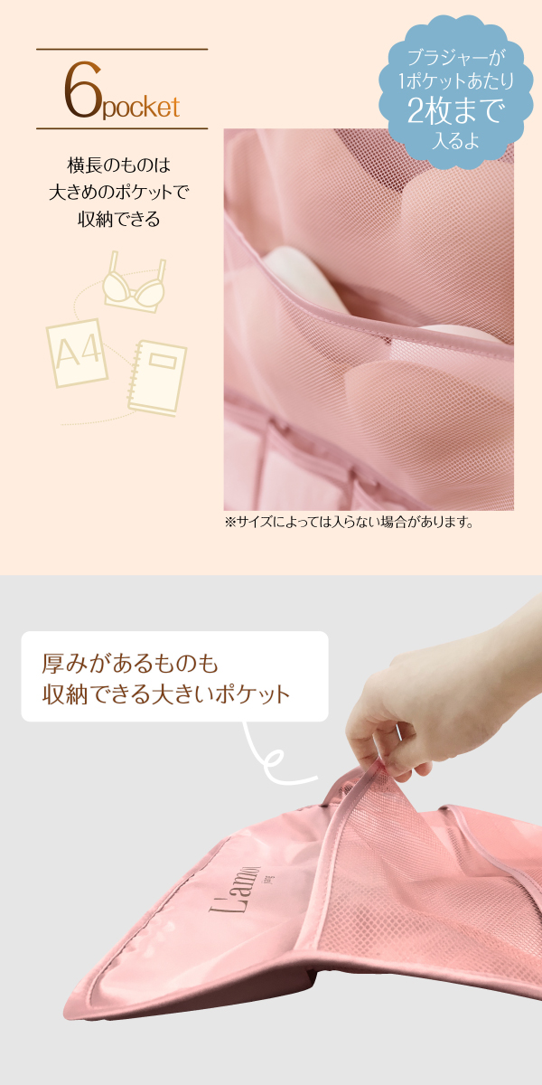 大きいポケットは、両面6ポケットあり、ブラジャーの収納に最適。