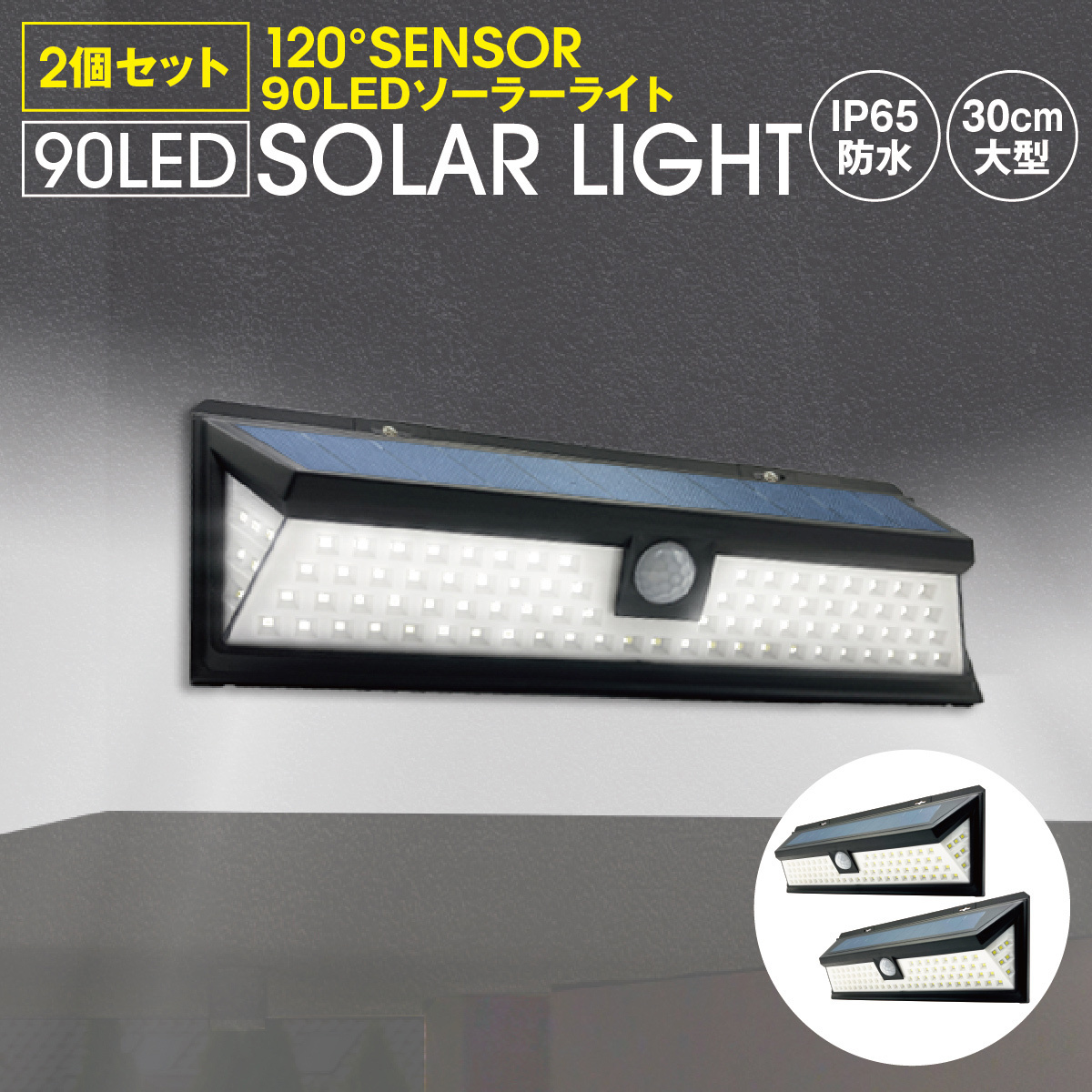 センサーライト 屋外 ソーラー 2個セット ソーラーライト 防水 明るい おしゃれ 90LED 人感センサー 壁掛け照明 防災グッズ s-senser02