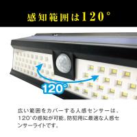 【感度範囲は120°】広い範囲をカバーする人感センサーは、120°の感知が可能。防犯用に最適な人感センサーライトです。