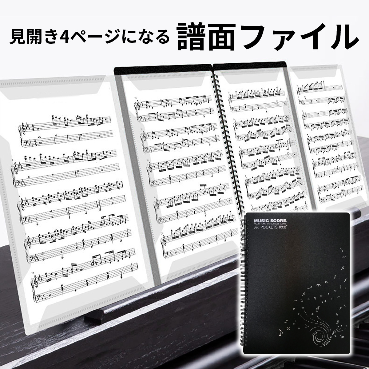 書き込める 楽譜ファイル 4面 見開き4面 20ファイル 40ページ ピアノ 譜面 ファイル 発表会 演奏会 楽譜台紙 score-file