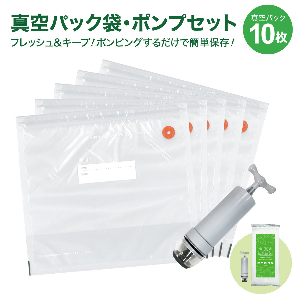 sale♪50%OFF/真空パック 袋 マチあり 10枚セット 専用ポンプ付 27.6×29.8cm×マチアリ 食品袋 密封袋 真空保存 再利用 キッチン用品 sinku-set10