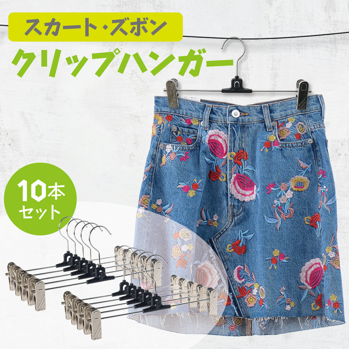 スカートハンガー ズボンハンガー クリップハンガー ハンガー 10本セット 連結 洗濯 スリム 省スペース 新生活 sk-hanger