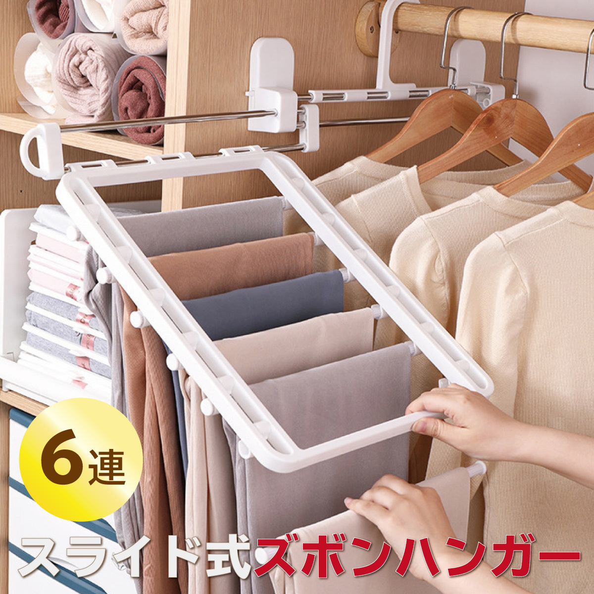 ズボンハンガー 6連 スライド式 スラックスハンガー ズボン ハンガーラック ハンガー 便利グッズ 便利 新生活 slide-hg