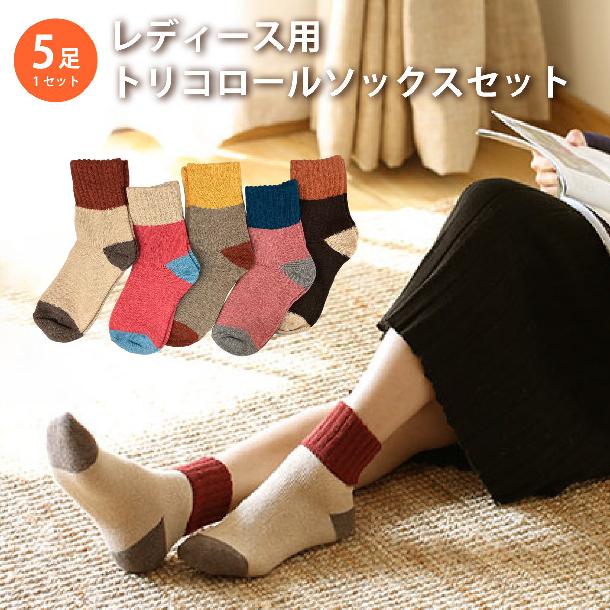 レディース 靴下 トリコロールソックス 5足セット ソックス 暖かい おしゃれ ロークルー カラフル 大人 かわいい 冷房対策 厚手 防寒対策 冷え性対策 socks09